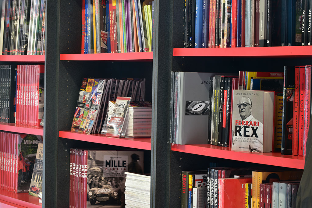 Nella libreria del museo troverete molte pubblicazioni sul mondo delle corse automobilistiche e diversi libri dedicati a marchi specifici e modelli particolari.